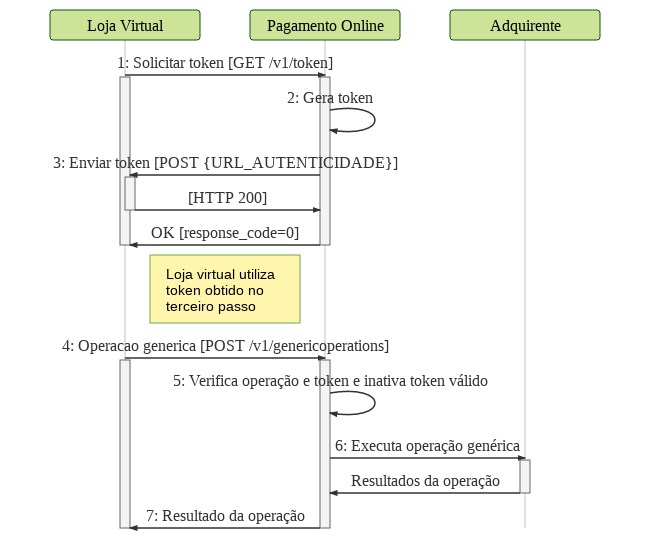 - Lojista solicita a geração de um token de autenticidade para as operações genéricas.