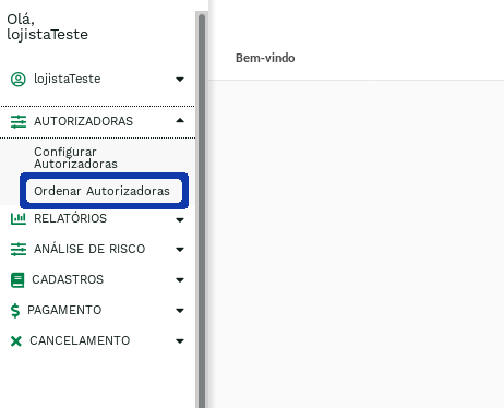 O Portal do Lojista também fornece a funcionalidade de Ordenação de Autorizadoras, que é mostrada ao clicar-se em Configurar Autorizadoras, conforme apresentado a seguir: