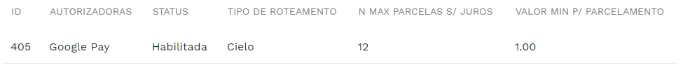 Na configuração ilustrada acima qualquer transação realizadas utilizando Google Pay, independente da bandeira do cartão, será roteada/capturada pela adquirente Cielo.