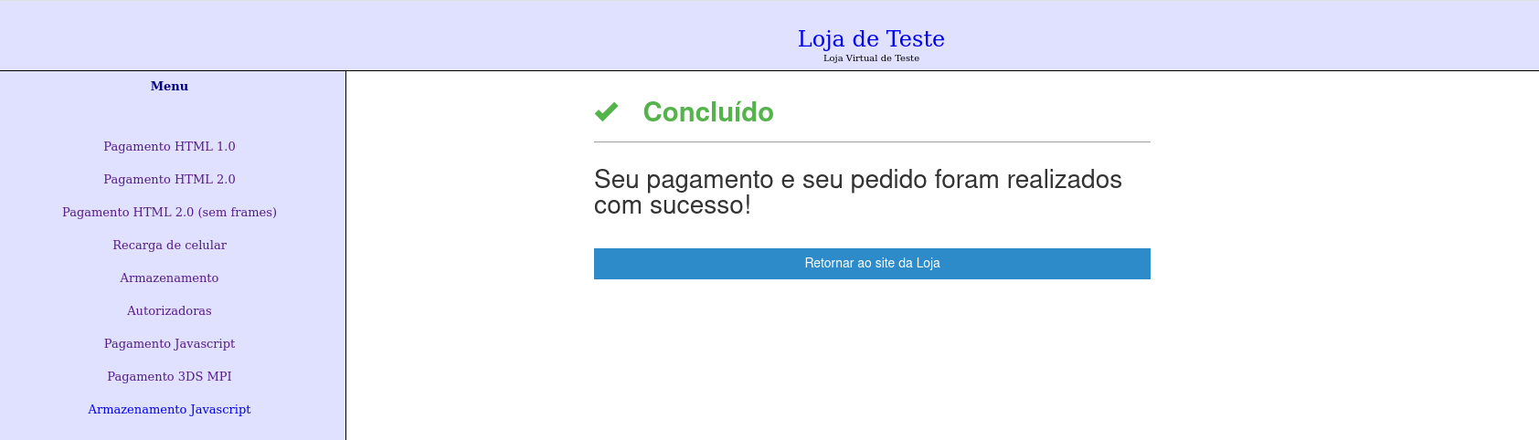 Attention: All procedures demonstrated on this page were carried out in the approval environment only to illustrate the flow of a JavaScript Payment with 3DS 2.0 authentication. None of the following screens will be used in the production environment.